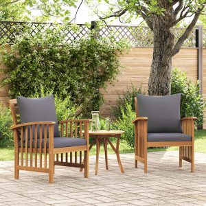 Garden Chairs with Cushions, 2 Pieces, Solid Acacia Wood