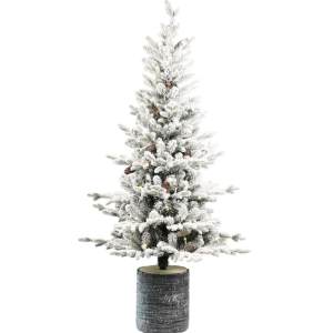 7ft Flocked Christmas Tree With 1514 Tips, Realistic PE PVC Snowy Hinged Tree With Metal Stand, Full Artificial Xmas Tree For Holiday Decoration