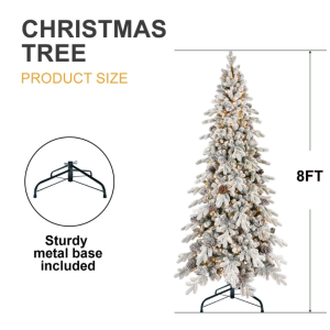 Artificial 6.5ft Decorated Flocking Basin Tree With 1386 PE PVC Mixed Branch Tips, Pine Cone X31, 350L Wram White Light, Holiday Decorating