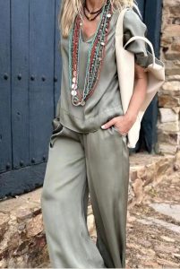 Fashion Casual Loose Artistic Pocket Drawstring Elastic Waist Wide Leg Pants