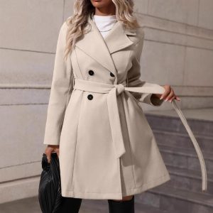 Double Breasted Elegant Slim Fit Elegant Versatile Lace-up Women’s Coat