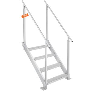 Dock Ladder 4 Step, Dock Stairs 30”-38” Adjustable Height, 500 Lbs Load Capacity, Aluminum Pontoon Boat Ladder With Dual Handrails & Nonslip Rubber Mat For Ship/Lake/Pool/Marine Boarding