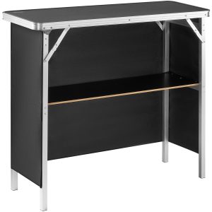 Folding Portable Bar Table, Tradeshow Podium Table For Indoor, Outdoor, Party, Picnic, Exhibition, Includes Carrying Case, Storage Shelf And Black Skirt, 38.39′ X 15.16′ X 34.25′