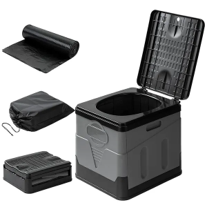 Portable Toilet For Car Camping Boating Hiking Outdoor Travel Potty With Carry Bag Foldable Emergency Toilet With Lid Trash Bags