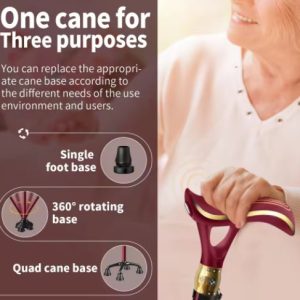 Walking Cane For Man Woman, Folding Walking Stick With 8-Level Adjustable Height, 4-Pronged Pivoting Base, Lightweight & Portable Aluminum Mobility Aid For Seniors Adults, 250LBS Loading Black
