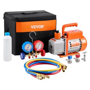 3.5 CFM HVAC Single Stage Rotary Vane Vacuum Pump And Manifold Gauge Kit