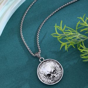 Vintage Men’s Alloy Necklace With Non Fading Punk Style Skull Pendant