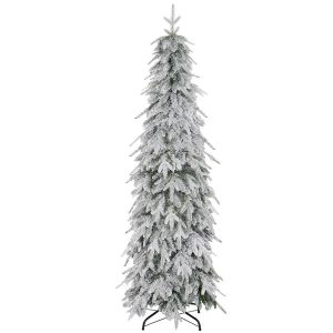 6ft Pencil Flocked Artificial Christmas Tree With 600 Branch Tips, Auto Open And Steel Base, Green