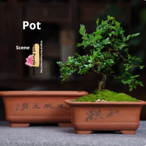 Extra Large Purple Clay Rectangular Bonsai Pot With Rockery