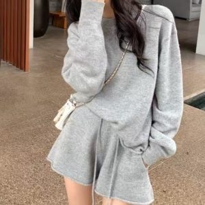 Knitting Suit Loose High Waist Shorts Short Skirt Two-piece Set