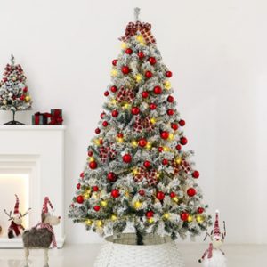 Prelit Snow-Flocked Artificial Pine Christmas Tree, Full Xmas Tree With 250 Lights, 8 Lighting Modes, 1Foldable Base For Home And Party Decor With Remote Control