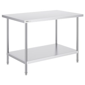 Stainless Steel Prep Table, 30 X 48 X 34 Inch, Heavy Duty Metal Worktable With 3 Adjustable Height Levels, Commercial Workstation For Kitchen Garage Restaurant Backyard