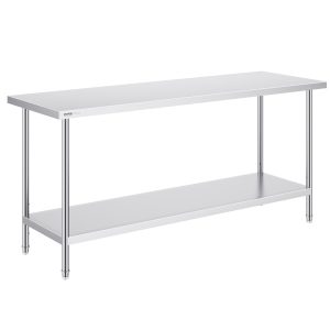 Stainless Steel Prep Table, 24 X 72 X 34 Inch, Heavy Duty Metal Worktable With 3 Adjustable Height Levels, Commercial Workstation For Kitchen Garage Restaurant Backyard