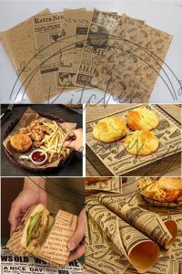 50 Pack Vintage Newspaper Pattern Wax Paper Mixed Design Food Presentation Sheets