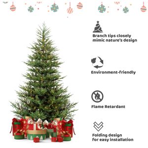 6ft Pre-Lit Artificial Christmas Tree With Multi-Colored Fiber Optic Light Xmas Tree With 230 Branches Tip Christmas Ornament Easy Assembly Christmas Decoration