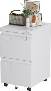 2 Drawers Mobile File Cabinet, Metal Under Desk Cabinet With Lock, For Office & Home, Legal Letter Size, Assembly Required White