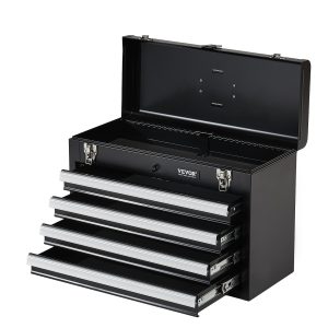 Metal Tool Box, 20.5-inch, Portable Metal Tool Box With 4 Drawers, Small Tool Chest With EVA Liners, Ball Bearing Slide Drawers Locking & Powder Coated Finish, Multi-Function Tool Organizer