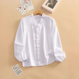 New Fashion V-neck Puff Sleeve Ruffles Blouse For Women