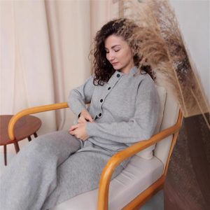 Women’s Sweater Suit Round Neck Sweater Cardigan Knitted Vest Same Color Trousers