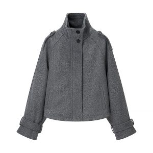 Women’s Loose Wool Lightly Mature Waist Trimming Short Coat