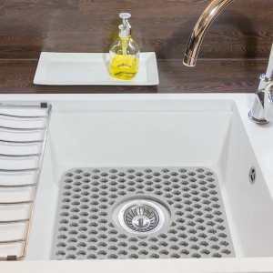 Silicone Grid Sink Mat With Central Drain Hole Non-Slip Kitchen Stainless Steel Sink Protector