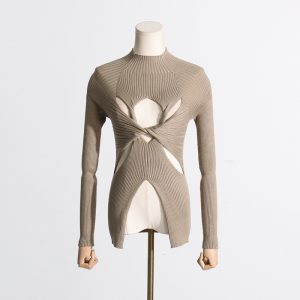 Simple Style Women’s Knitwear Semi-high Neck Slim Fit Slimming Twist Hollow-out High-end Top