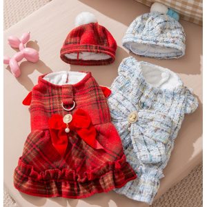 In Winter, Add A Plush Bow And A Chanel-style Dress To Make A Warm Two-legged Dog Pet Outfit For Your Kitten In Autumn And Winter