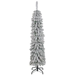 5ft Snow-Flocked Artificial Christmas Tree, Slim Pencil Xmas Tree With 301 Realistic Branches, Metal Base, Green