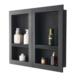 Shower Niche, 40.6 X 61.0 Cm + 40.6 X 61.0 Cm Recessed Wall Niche With Movable Shelf, 10.2 Cm Thick Modern Soap & Shampoo Storage Organizer,Square Corners,Sealed Waterproof, Black For Bathroom