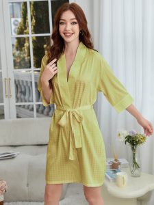 Lightweight Herringbone Knit Bathrobe, Spa And Bridesmaid Dress-style Nightgown Sets, Suitable For Women – Dries Quickly And Is Soft And Comfortable