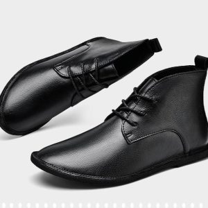 Flat Heel Retro Low Leather Boots Soft Bottom Lace Up Back Zipper