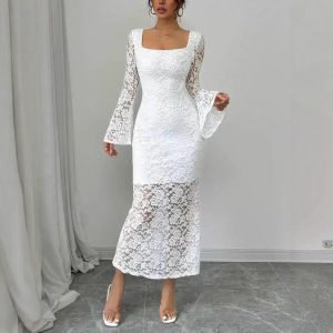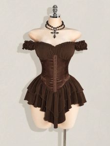 Jacquard Patchwork Ruffled Lotus Leaf Dress