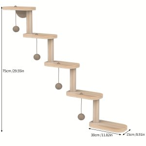 DIY Modular Cat Climbing Wall With 4 Balls – Multi-level Indoor Cat Tree Furniture, Space-Saving Wall-Mounted Perch And Play Activity Center, Multi-Level Wooden Cat Climbing System