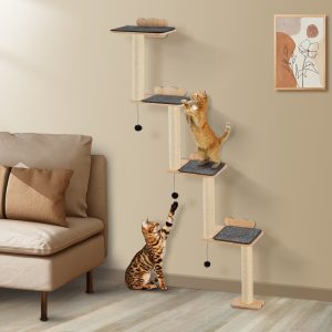 4 Tiers Cat Tree, Cat Wall Furniture Set With 4 Jumping Boards, Wall-Mounted Cat Floating Shelf Up To 40 Lbs, 12 Mm Pine Wood Cat Perch For Sleeping, Playing, And Climbing