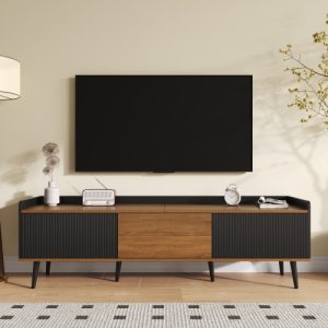 TV Cabinet, TV Table, TV Stand, Three-Door Base Cabinet. Compact Design. Black And Natural Wood Finish. Height 49.5 Cm Length 160 Cm Width 39 Cm
