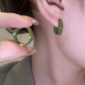 Green Dripping Oil Earclip Earrings Special-interest Design Light Luxury White Ear Ring