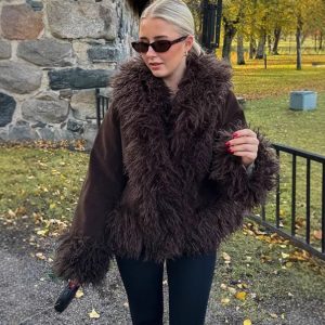 Women’s Clothing Leopard Splicing Plush Long Sleeve Coat