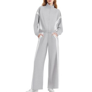 Double Striped Long-sleeve Zipper Pants Pocket Sports Suit