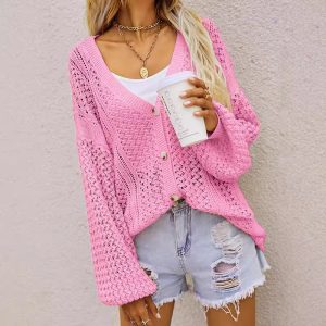 Hollow Personality V-neck Loose Cardigan Button Sweater