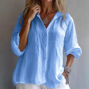 Spring Bestseller Women’s Solid Color Linen Long Sleeve Casual Shirt