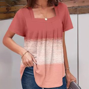 Dovetail Square Collar Pleated Ruffled Short Sleeves T-shirt