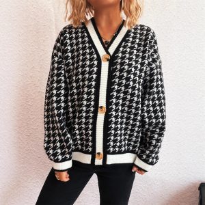 Stitching Plaid Knitted Women’s Sweater