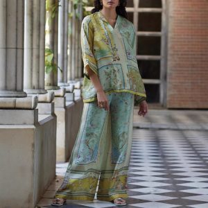Printed Mid-sleeve Pants Straight Through Fashion Casual Two-piece Set