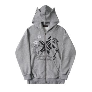 Sweet Cool Graffiti Printing Cat Ears Hooded Sweater
