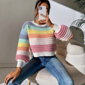 Women’s Sweater Thick Gentle Loose Lazy Stripe Japanese Retro