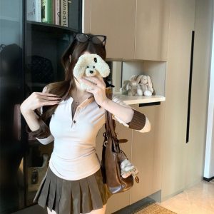 Color Contrast Patchwork Lapel Temperament Long Sleeve T Fall Slim Fit Slimming
