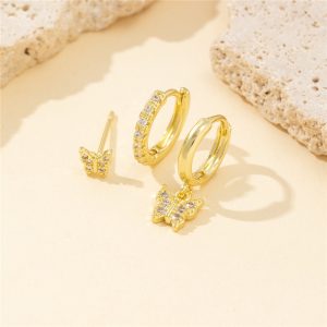 New Copper Inlaid Zirconium Butterfly Studs Ear Clip Set