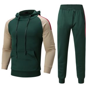 Men’s Casual Color-block Jacquard Hooded Sweatshirt