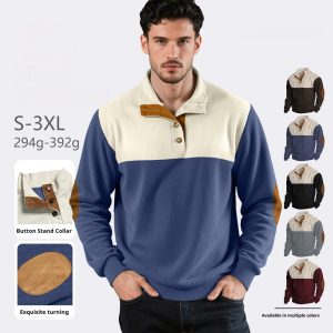 Men’s Casual Color-blocked Lapel Sport Sweatshirt
