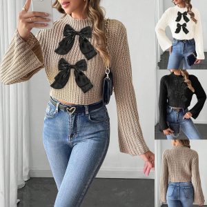 Red Cherry Sweater Women’s Fashion Round Neck Pullover Long Sleeve